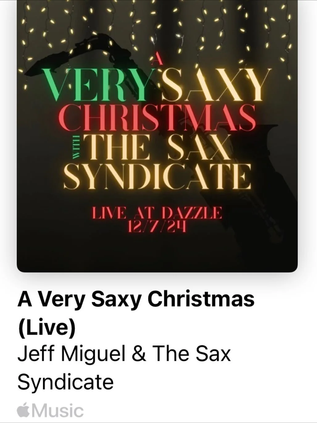 The Sax Syndicate adds guest artists to most shows. The regular members are Jeff Miguel (Leader & Alto/Soprano Sax), Ty Nemechek (Alto Sax), Chris Wojtecki (Tenor Sax), Drew Gomez (Bari Sax), Ron Bland (Bass), Daniel Moran (Piano), and Josh Beyers (Drums).